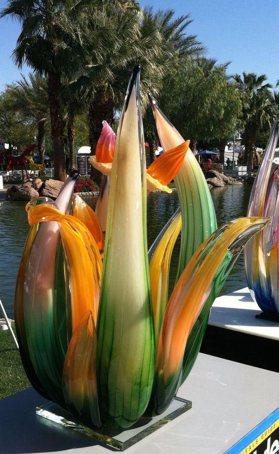 Desert Cactus is high-quality glasswork that reflects the different seasons with interchangeable flowers. This glasswork is made by Randy Strong, who has dedicated his life to pushing the limits of hot glass and developed a style that cannot be found anywhere else. This art piece won Best in Category, at the 2012 La Quinta Arts Festival and can currently be found at La Quinta City Hall. https://www.rstrong.com/
